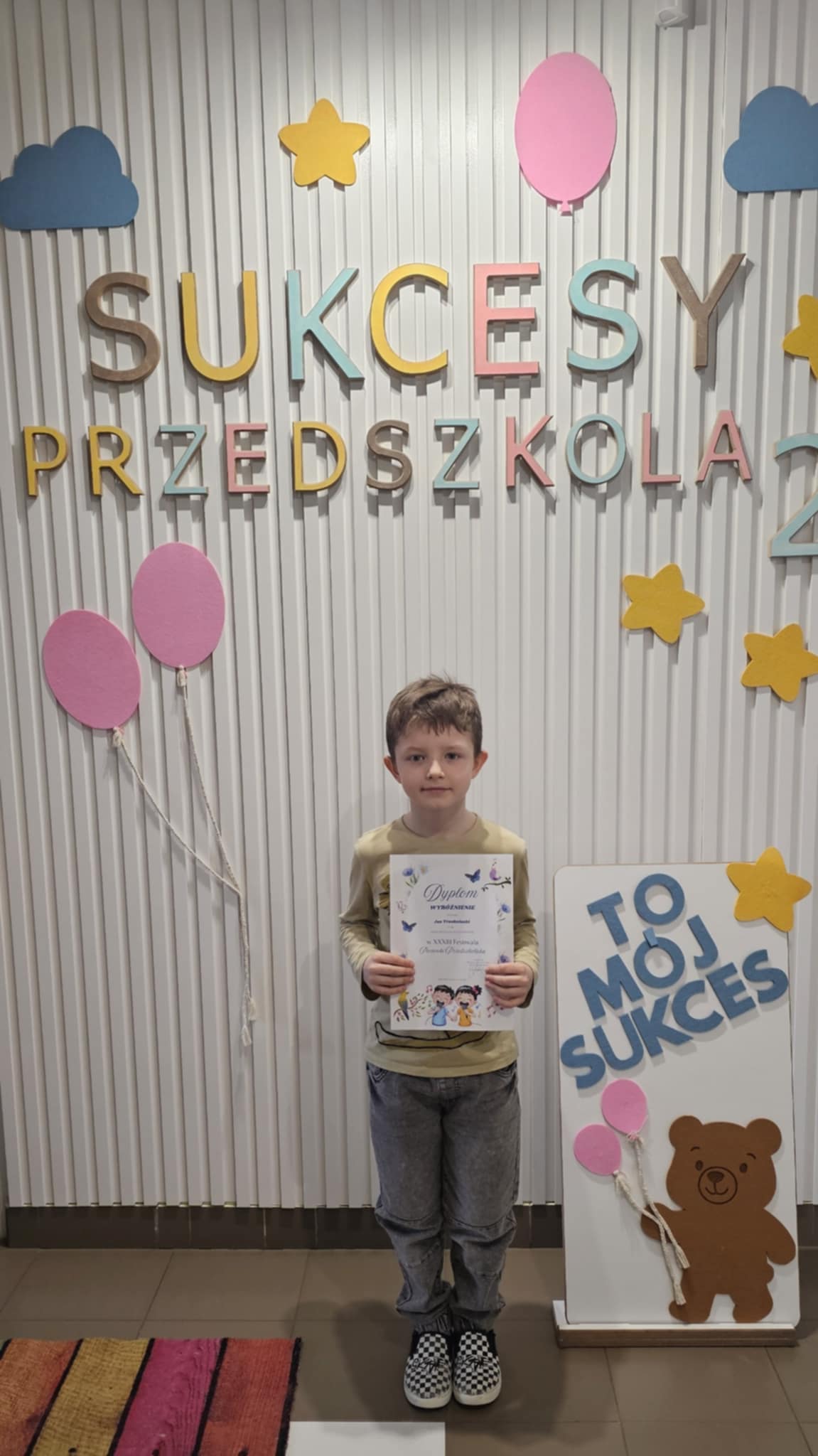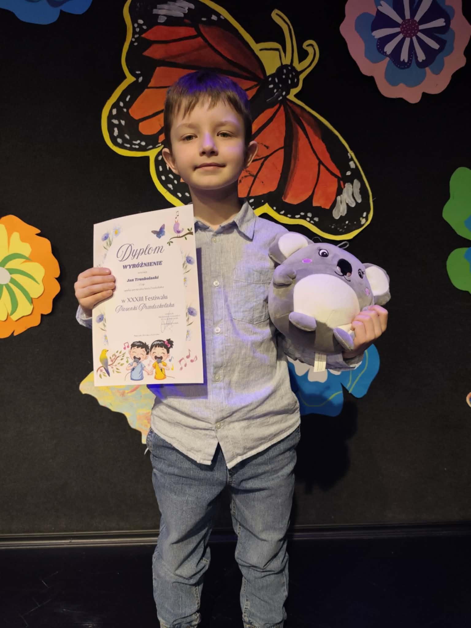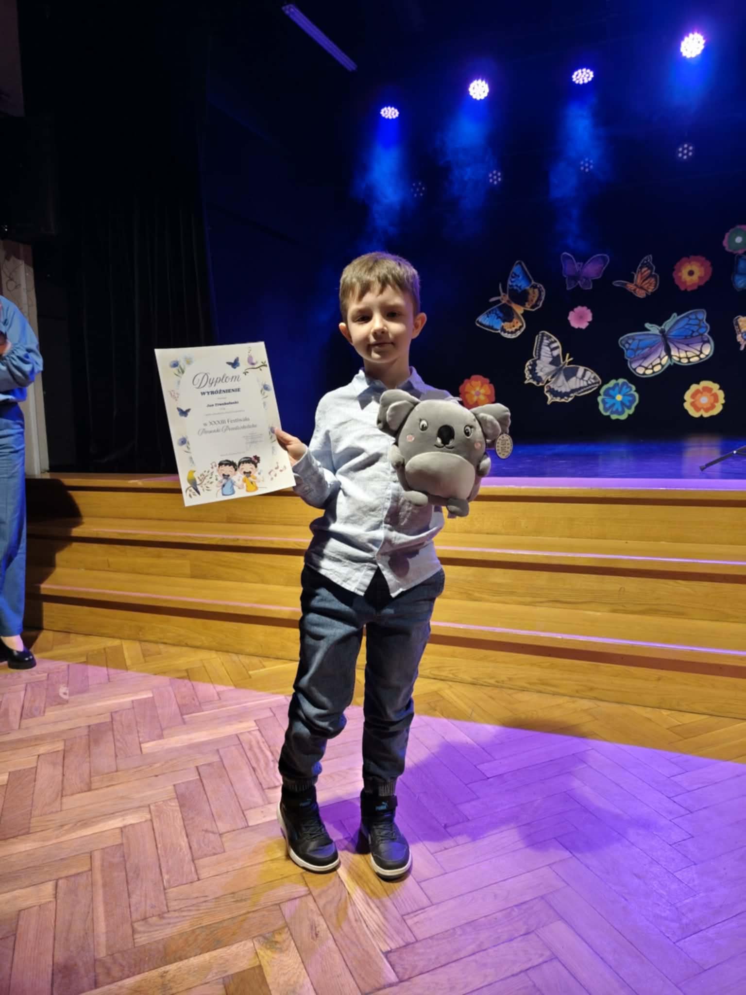Z radością informujemy o sukcesie naszego przedszkolaka! Jaś Truskolaski wziął udział w XXXIII Festiwalu Piosenki Przedszkolaka, który został zorganizowany przez Zespół Placówek Oświatowych nr 2 w Białymstoku. Wydarzenie to co roku gromadzi utalentowane dzieci z różnych przedszkoli, dając im możliwość zaprezentowania swoich umiejętności wokalnych oraz scenicznych. Nasz mały artysta zaprezentował się znakomicie, zachwycając jury oraz publiczność swoim występem. Jego zaangażowanie, odwaga oraz radość ze śpiewania zostały docenione, czego efektem było zdobycie wyróżnienia w konkursie. Jesteśmy niezwykle dumni z Jasia i cieszymy się, że z tak wielką pasją rozwija swoje talenty. To dla nas wszystkich ogromna radość obserwować jego sukcesy i postępy. Serdecznie gratulujemy Jasiowi oraz dziękujemy rodzicom za wsparcie i zaangażowanie. Życzymy dalszych sukcesów i wielu kolejnych muzycznych przygód!